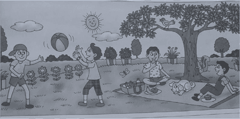 IX. Look at the pictures given below. Describe in a paragraph. 1×3=3