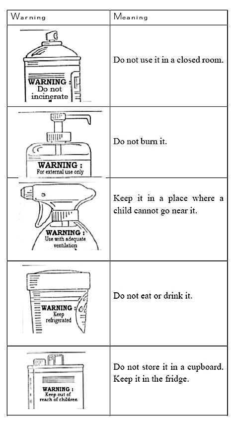 Read the warnings given on each of the pictures below. Match them with the meaning of the warning.